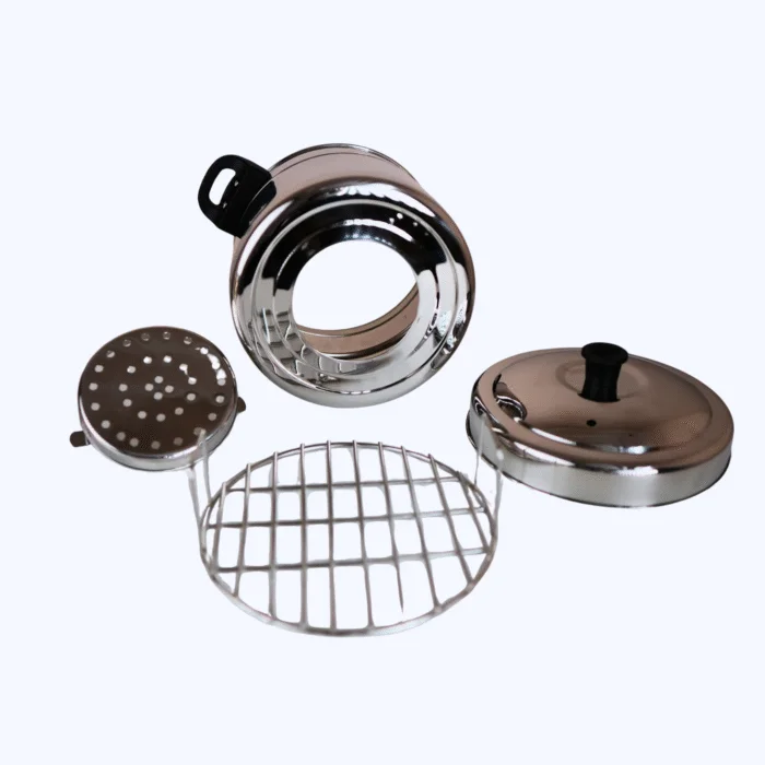Bring home the taste of authentic Indian tandoori cooking with the Anupam Steel Bati Maker Gas Tandoor & Pizza Maker, a versatile 3-in-1 cooker designed for every modern Indian kitchen. Crafted from premium food-grade stainless steel with a mirror-polished finish, this multi-purpose appliance allows you to prepare bati, pizza, rotis, paneer tikka, grilled vegetables, cakes, papad, and more — all using a regular gas stove.