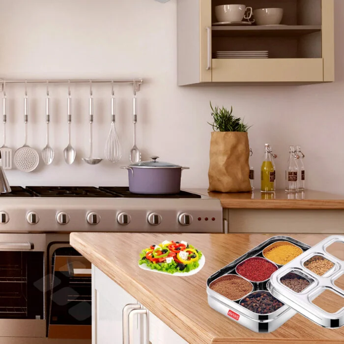 With AVIAS, you can be assured of premium quality, high durability, and kitchen convenience wrapped in one product. Add this versatile masala dani / masala dabba to your collection and enjoy an organized, stylish kitchen.
